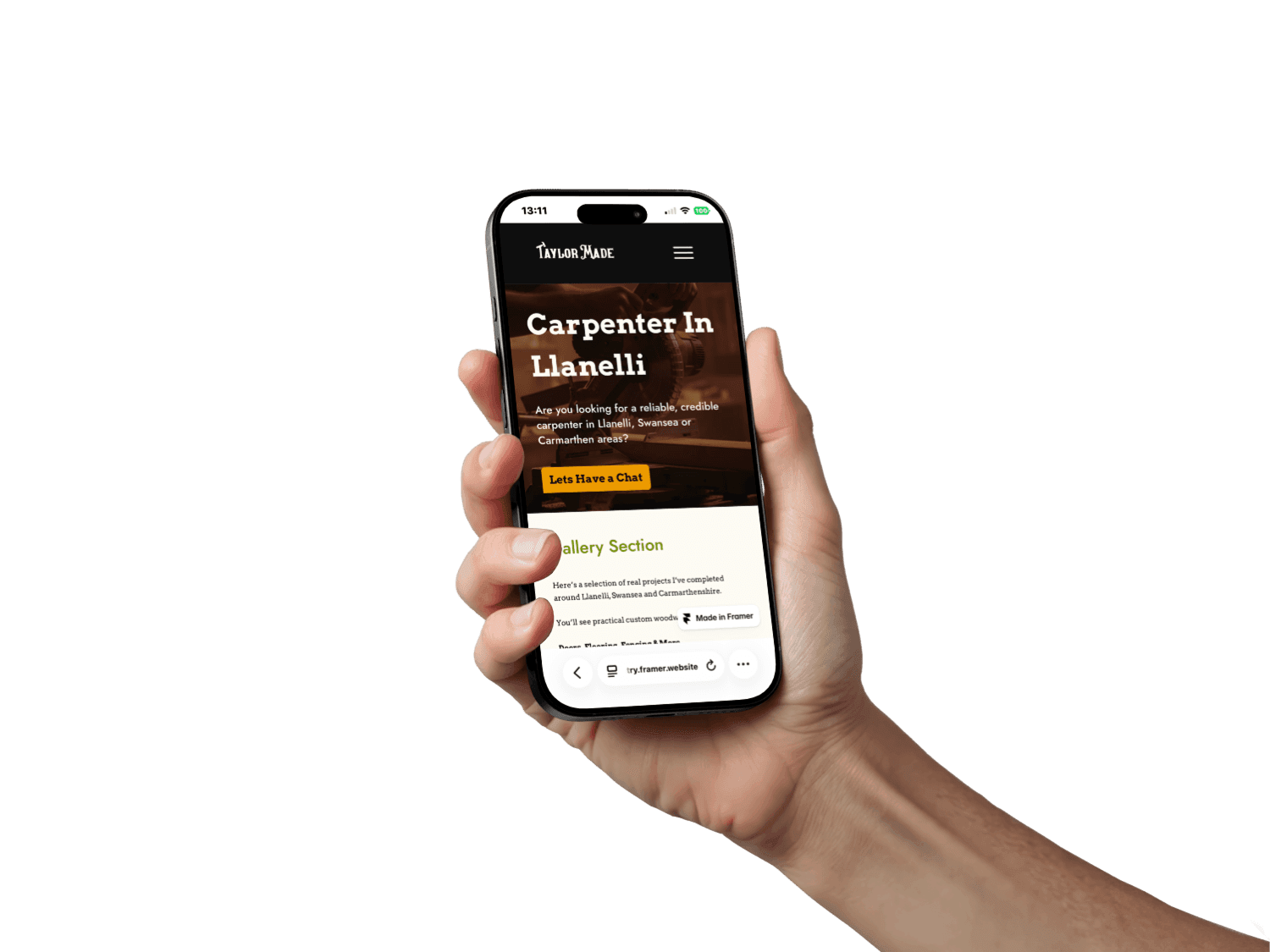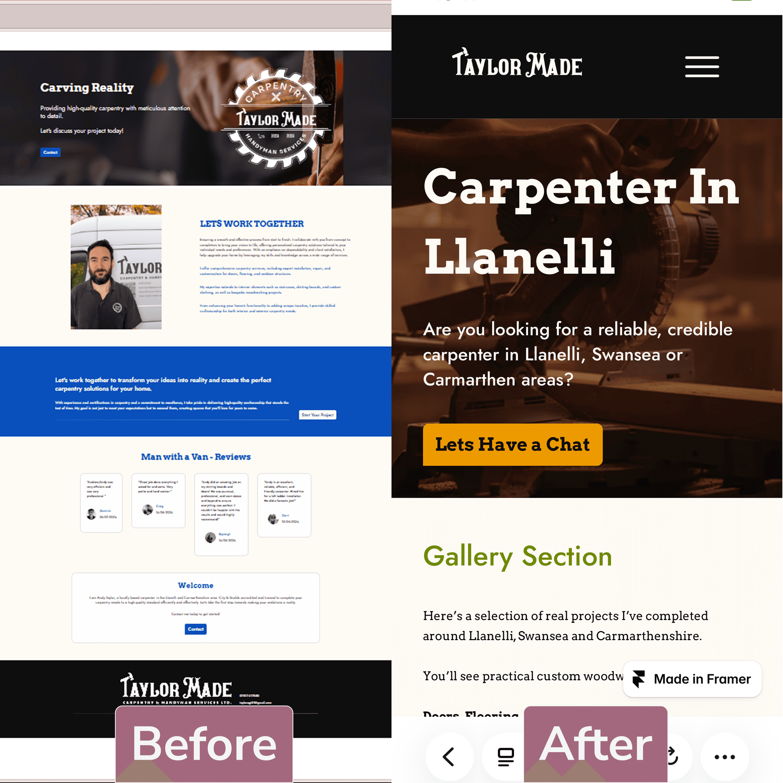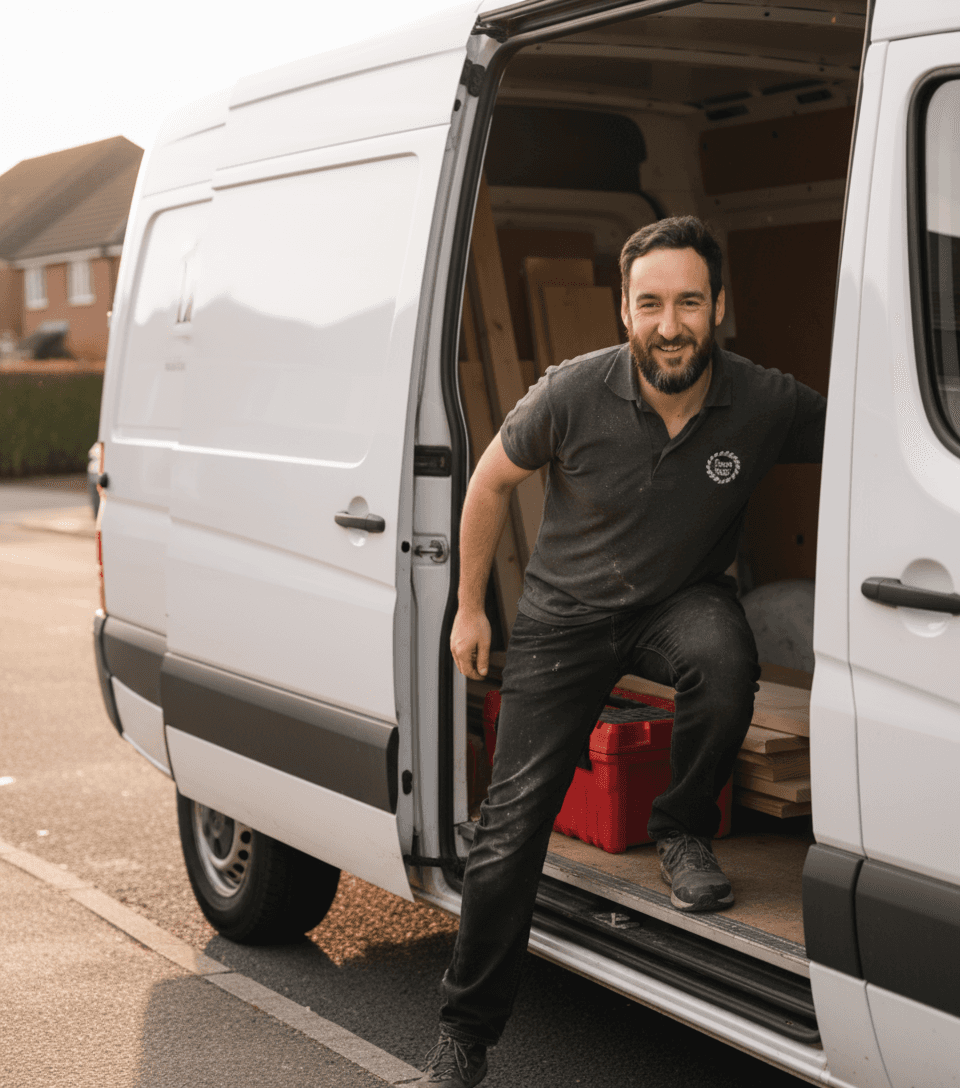 An end-to-end brand and van-led visibility project for a carpenter at the start of his career change, building his logo, landing page, and on-the-road advertising so people could see what he does, remember him, and get in touch effectively and efficiently.