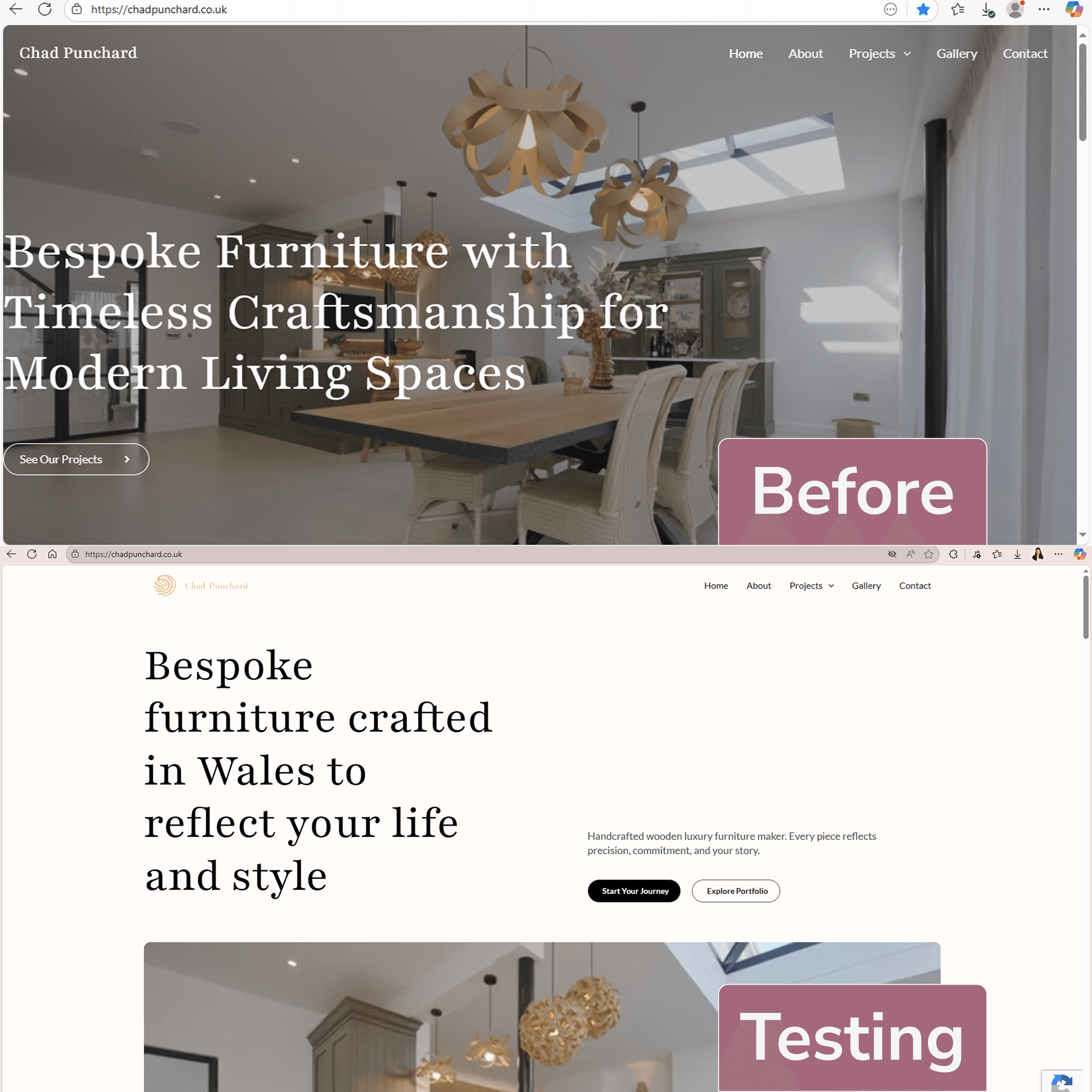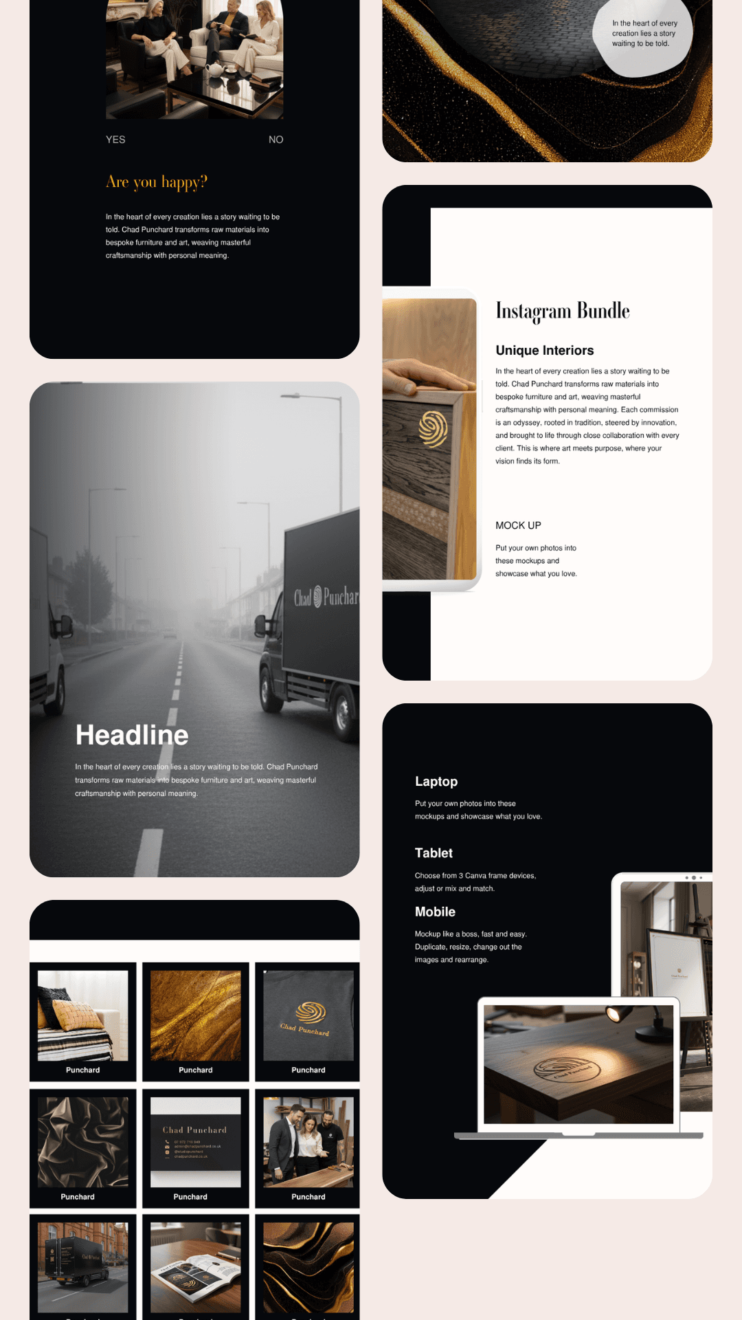 A full rebrand for a bespoke furniture and interiors business, focusing on moving from “inconsistent branding” as a local joiner to a more upmarket, memorable brand that actually reflects his craftsmanship and helps the right clients find him.